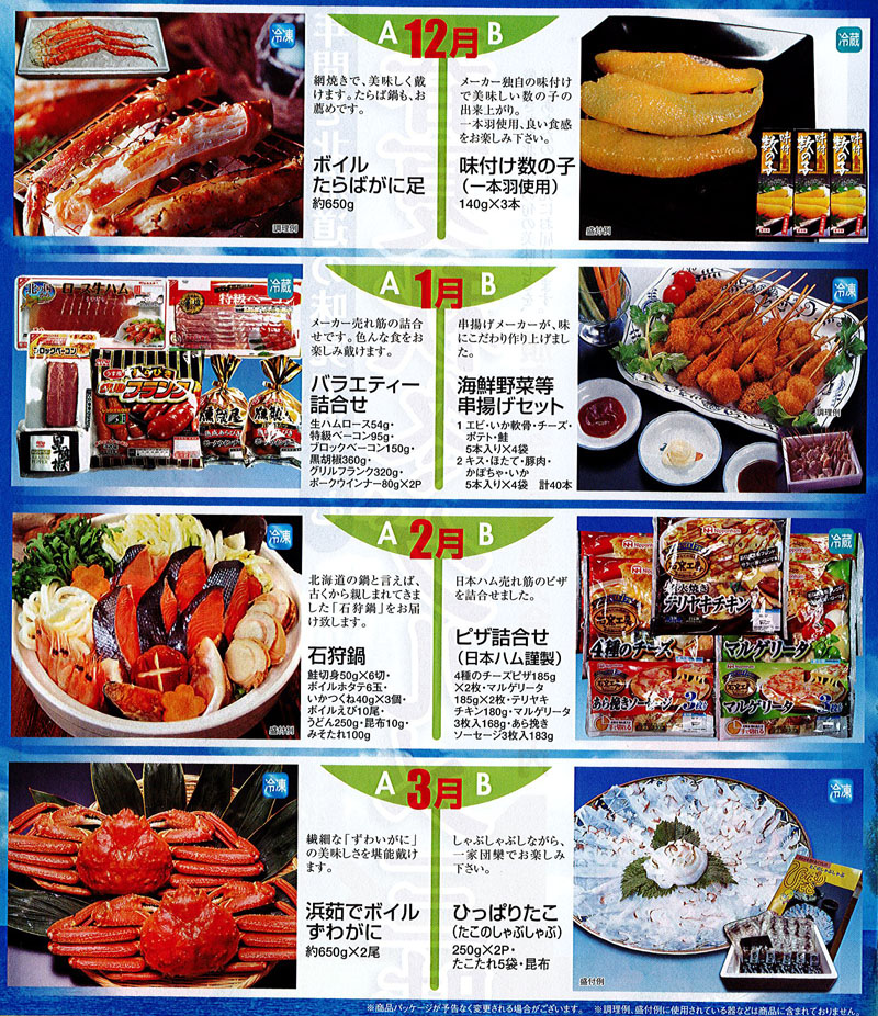 本ページの下部の選択リストより1〜12月それぞれのお取り寄せ商品、お支払方法をご選択ください。